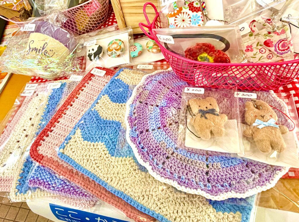 ほかにも、カラフルな春色のハンカチ・雑貨・ストラップ・小物入れなど。