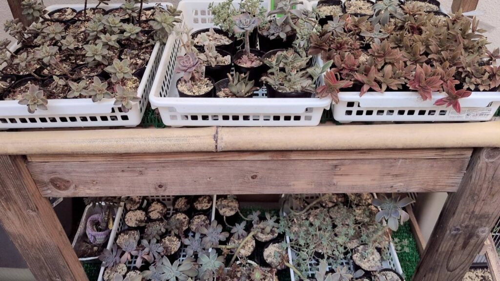 寒い日々が続いていますが、カモメ工房のテラスで育てている多肉植物は、何とか冬の寒さを乗り切りました。